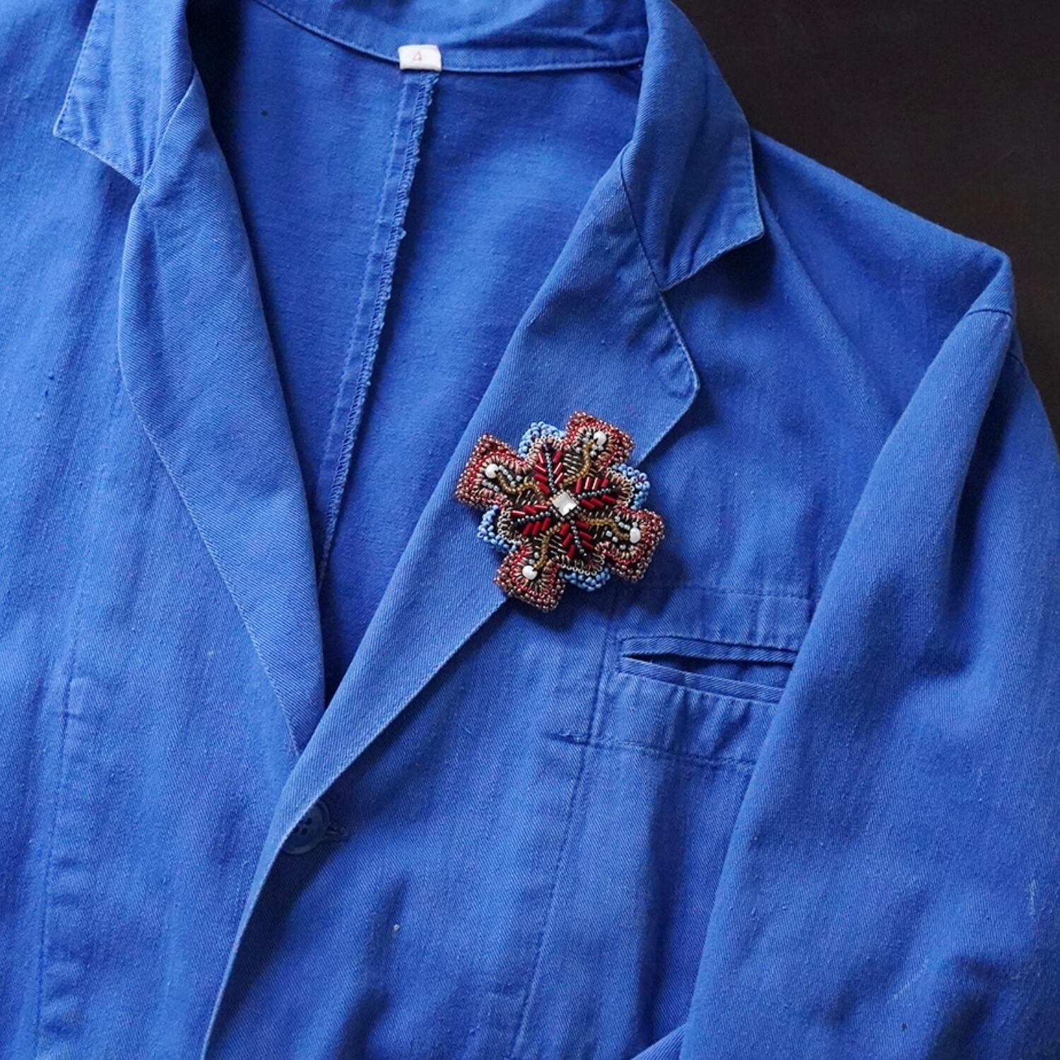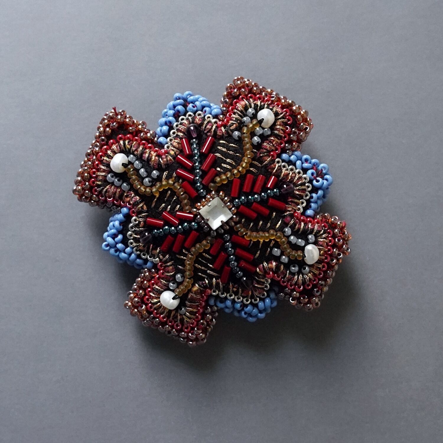 変形クロスのブローチ 1 ビーズ刺繍 一点もの カラフル