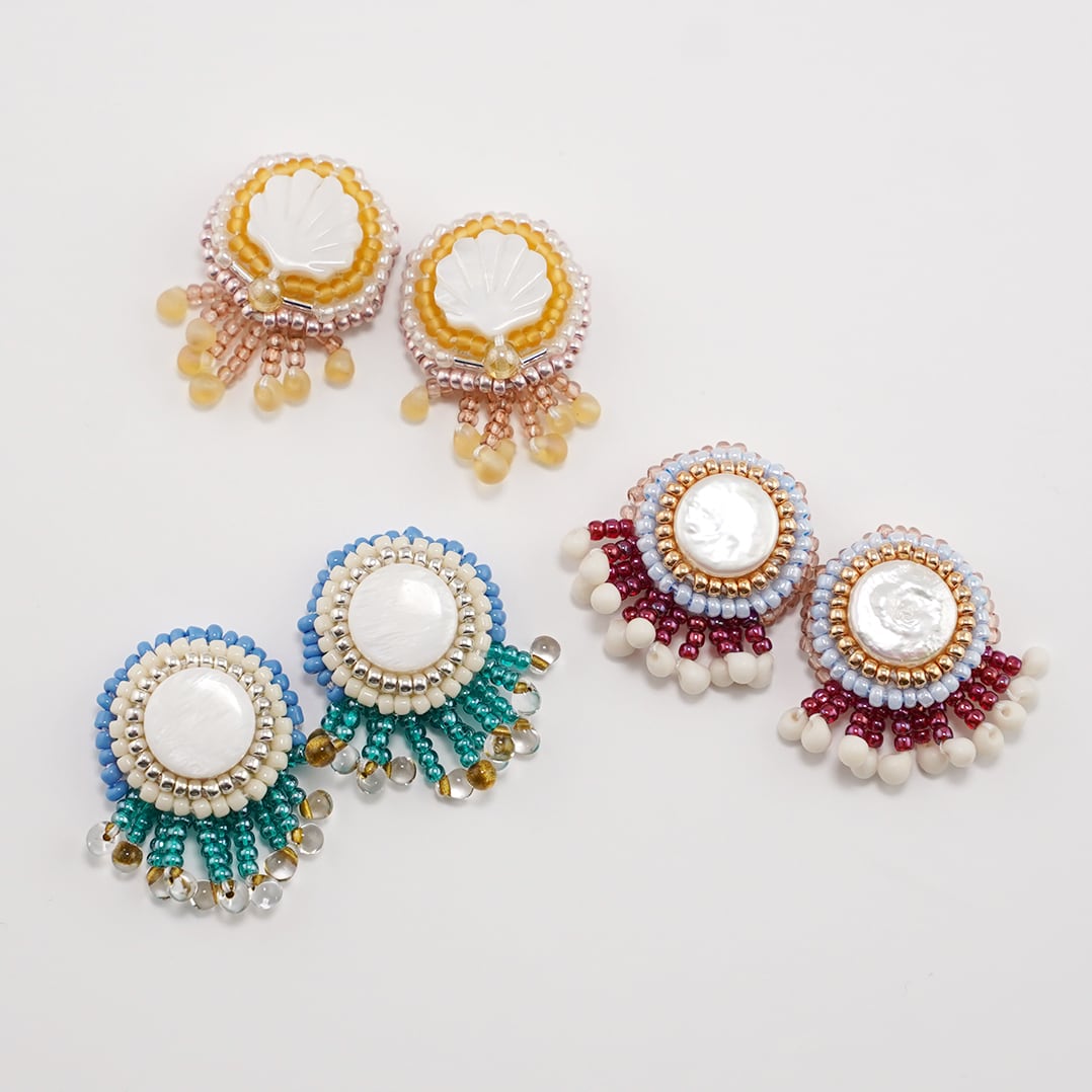 メインのビーズを引き立てるように細かなビーズを配置し、華やかなデザインに仕上げました。