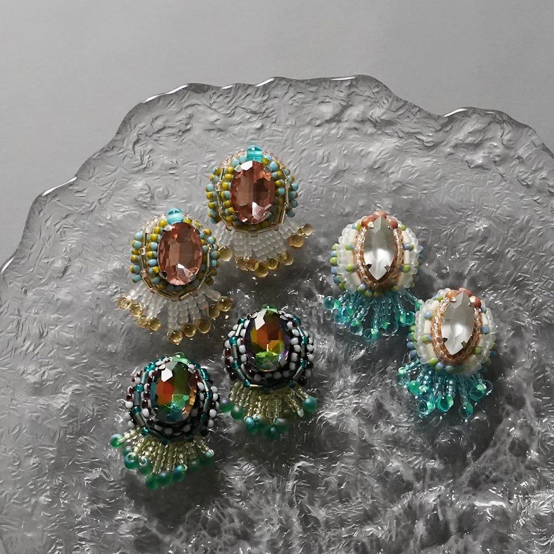 メインのビーズを引き立てるように細かなビーズを配置し、華やかなデザインに仕上げました。