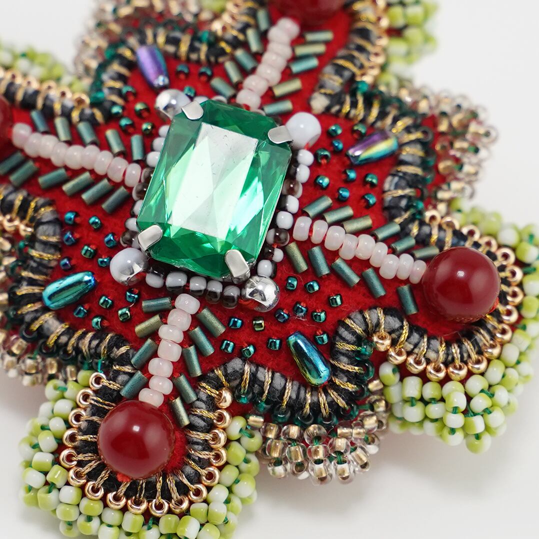 細かなビーズをたくさん使用していますが裏側からほつれ留めを使用しているため壊れにくいです。