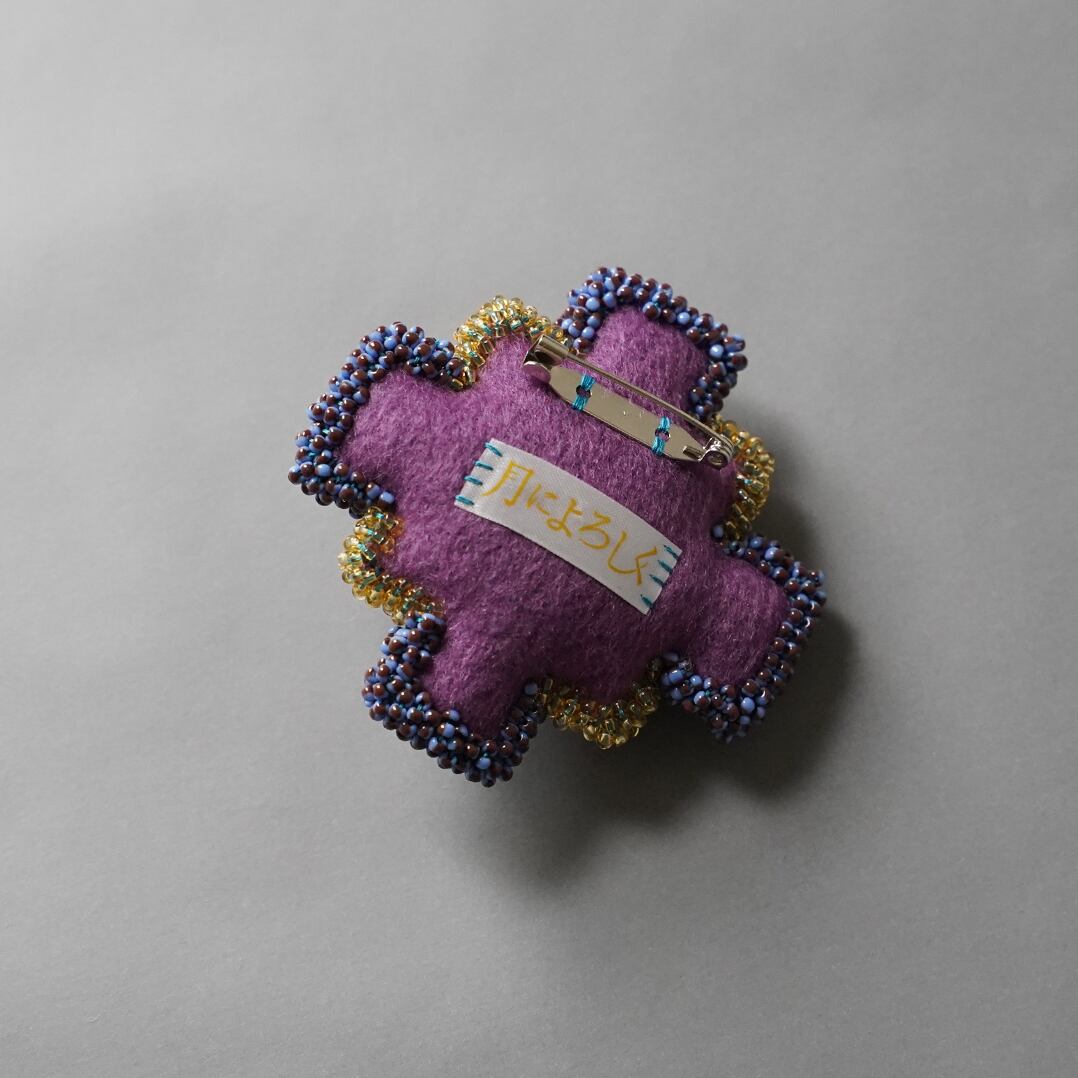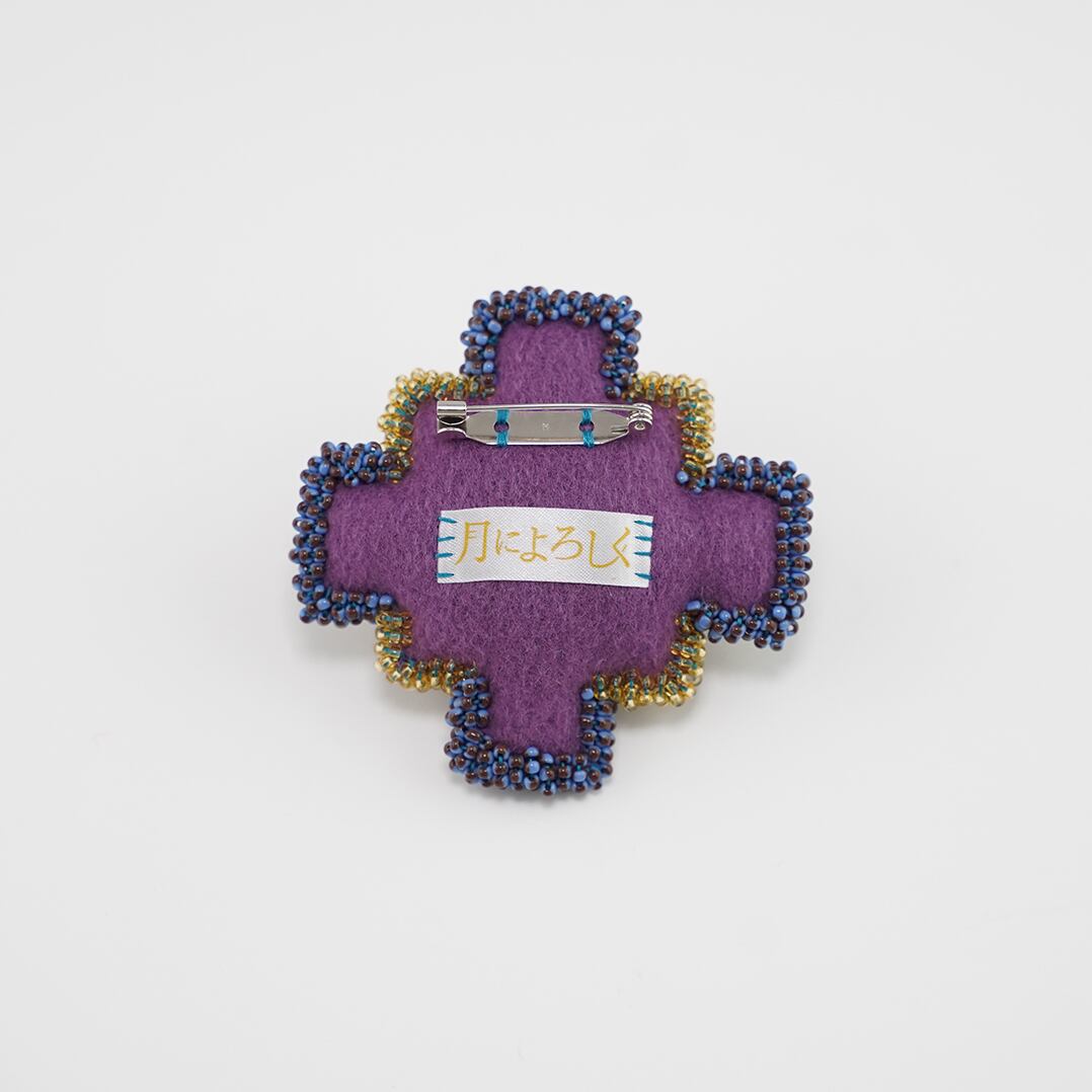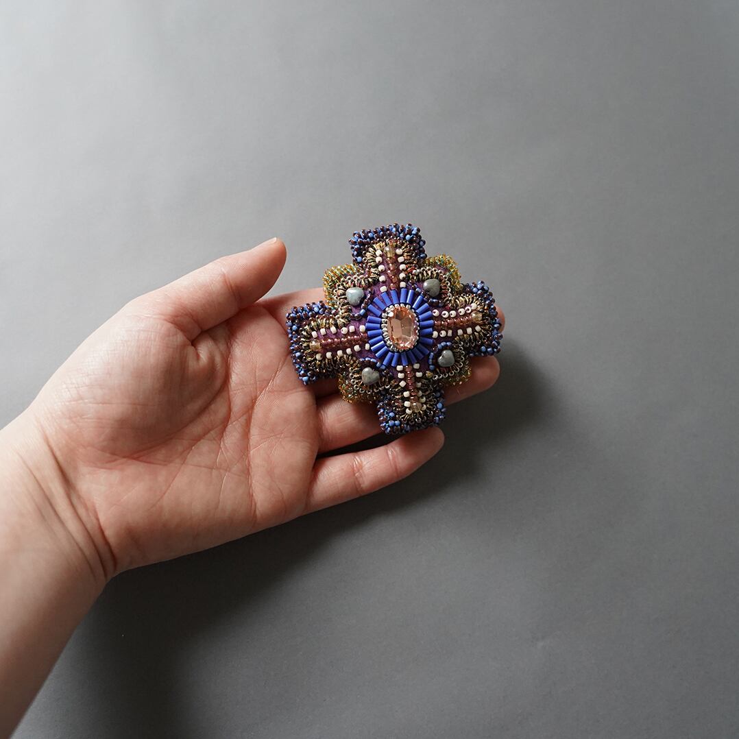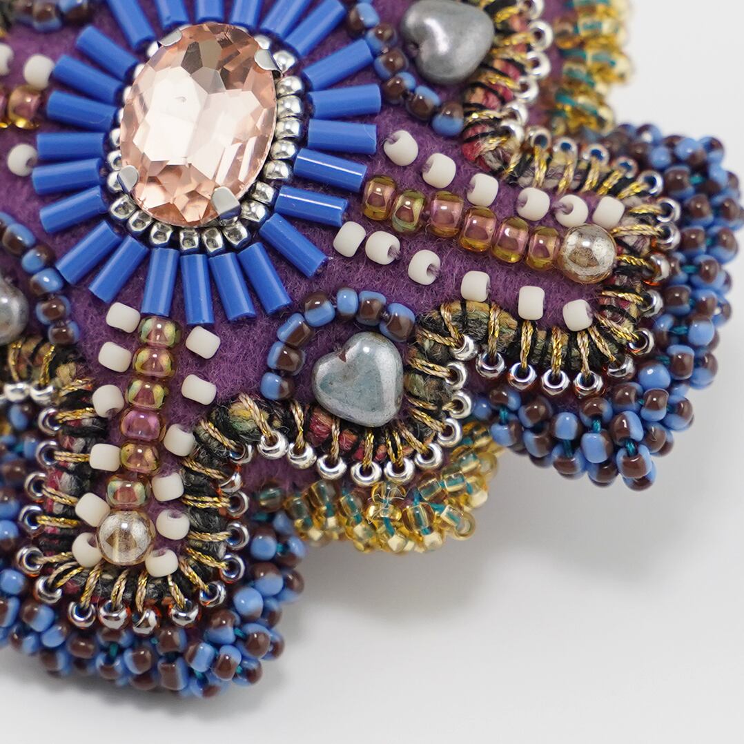 変形クロスのブローチ 8 ビーズ刺繍 一点もの カラフル  パープル ブルー おおぶり クリスマス ビジュー