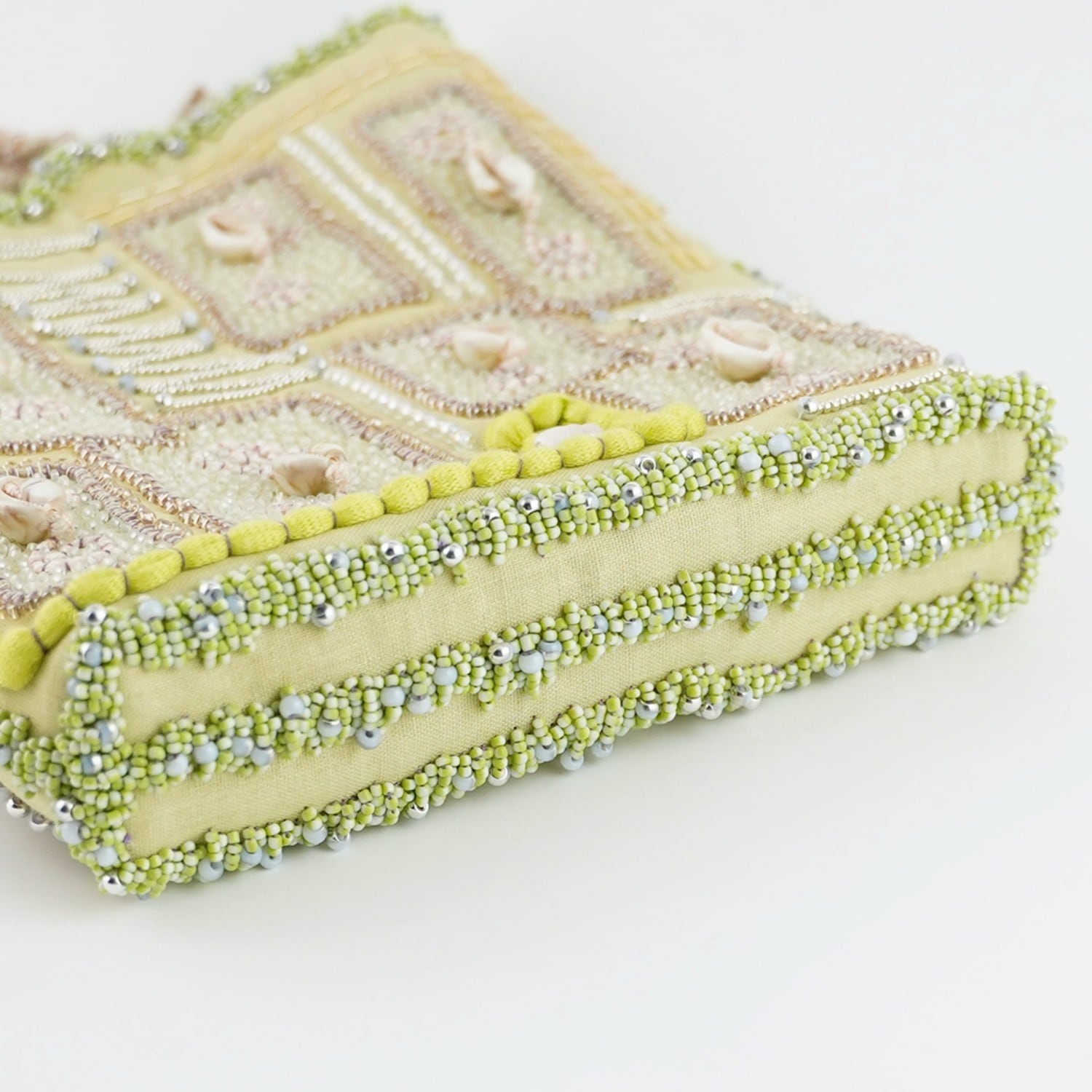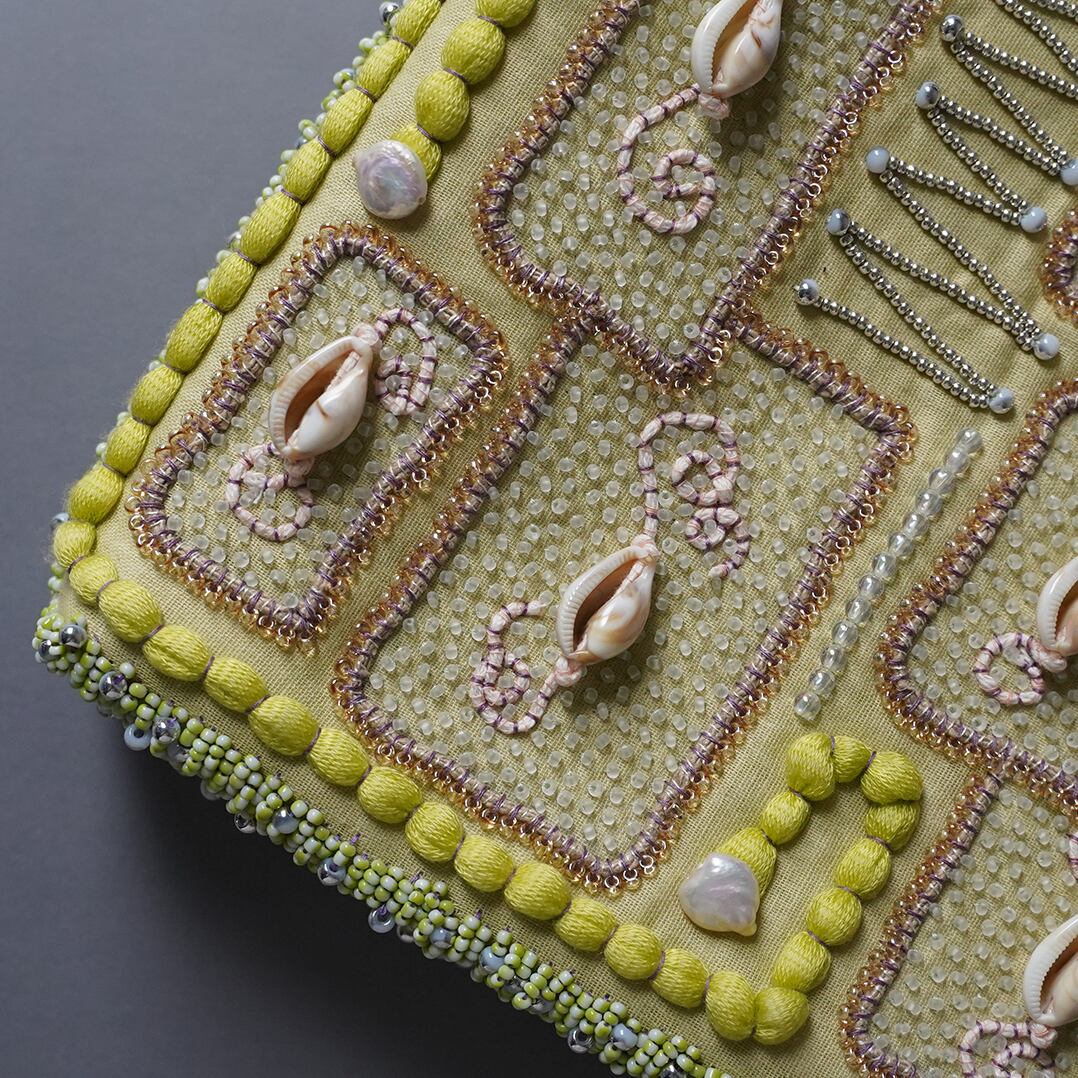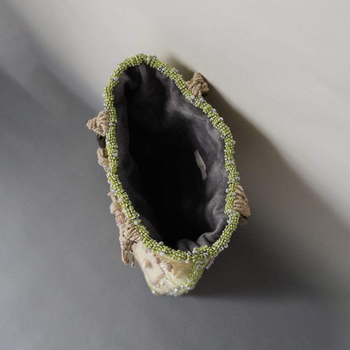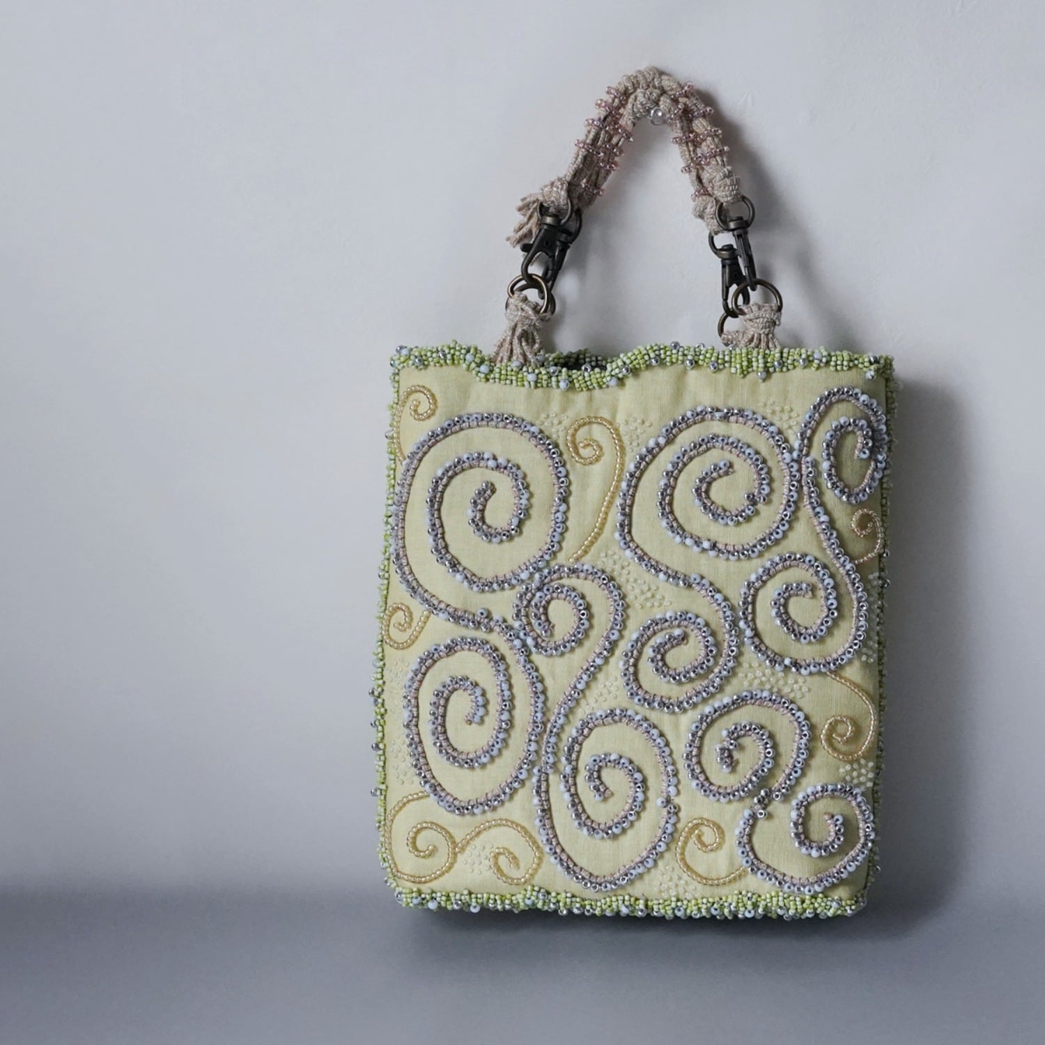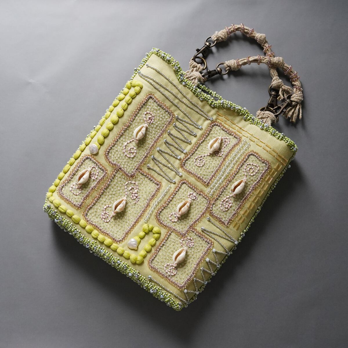 取り扱い注意:素材の特性上摩擦や雨により生地が毛羽立ったりビーズが退色したりする場合があります。