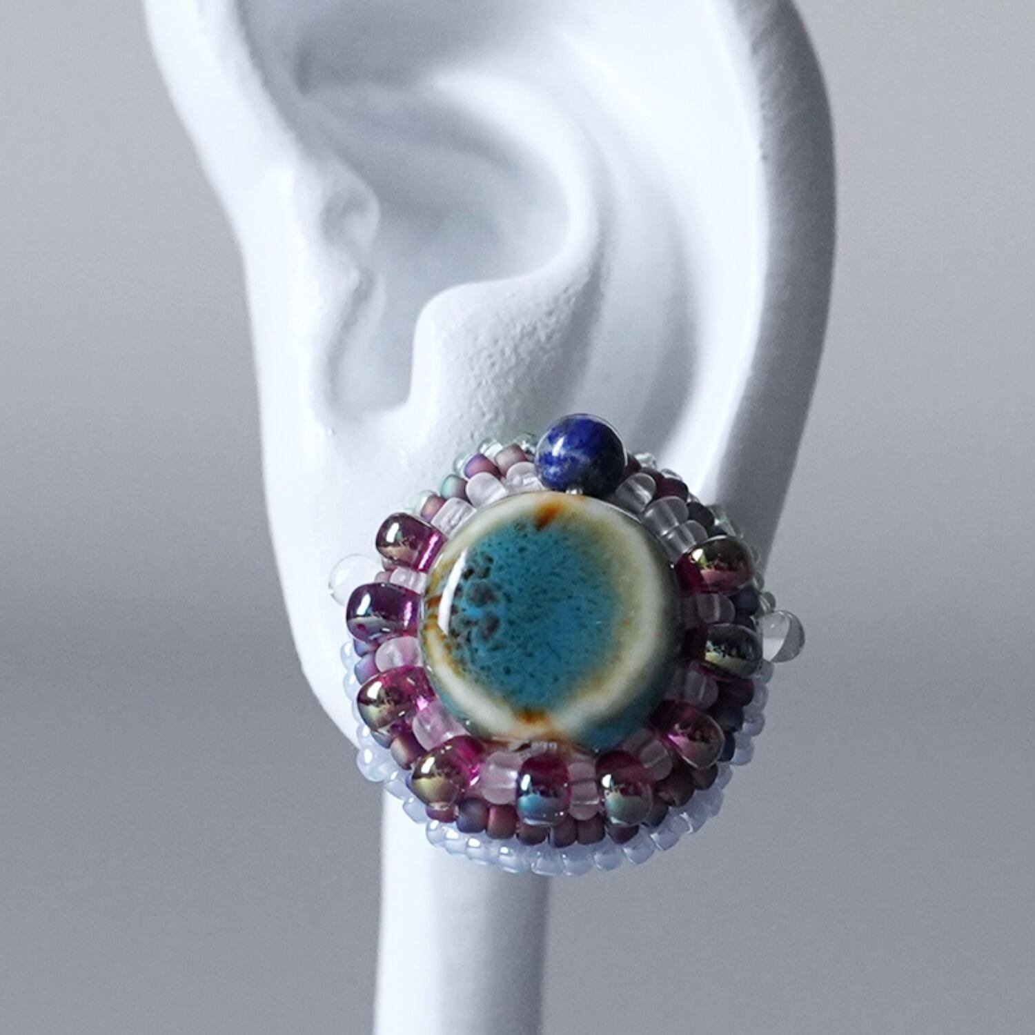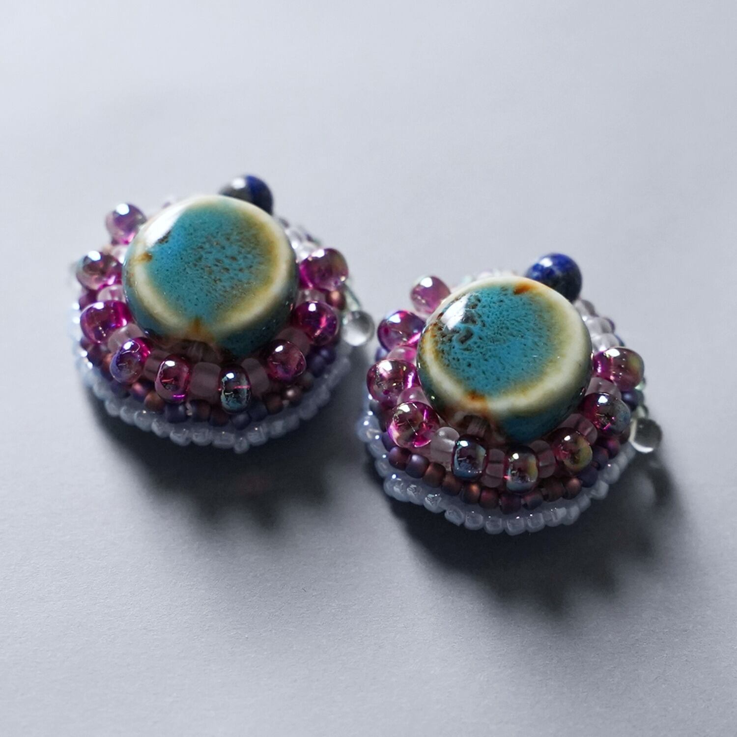 ビーズ刺繍のイヤリング ピアス 20 グリーン ブルー パープル おおぶり サージカルステンレス 一点もの 個性的