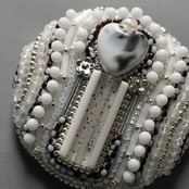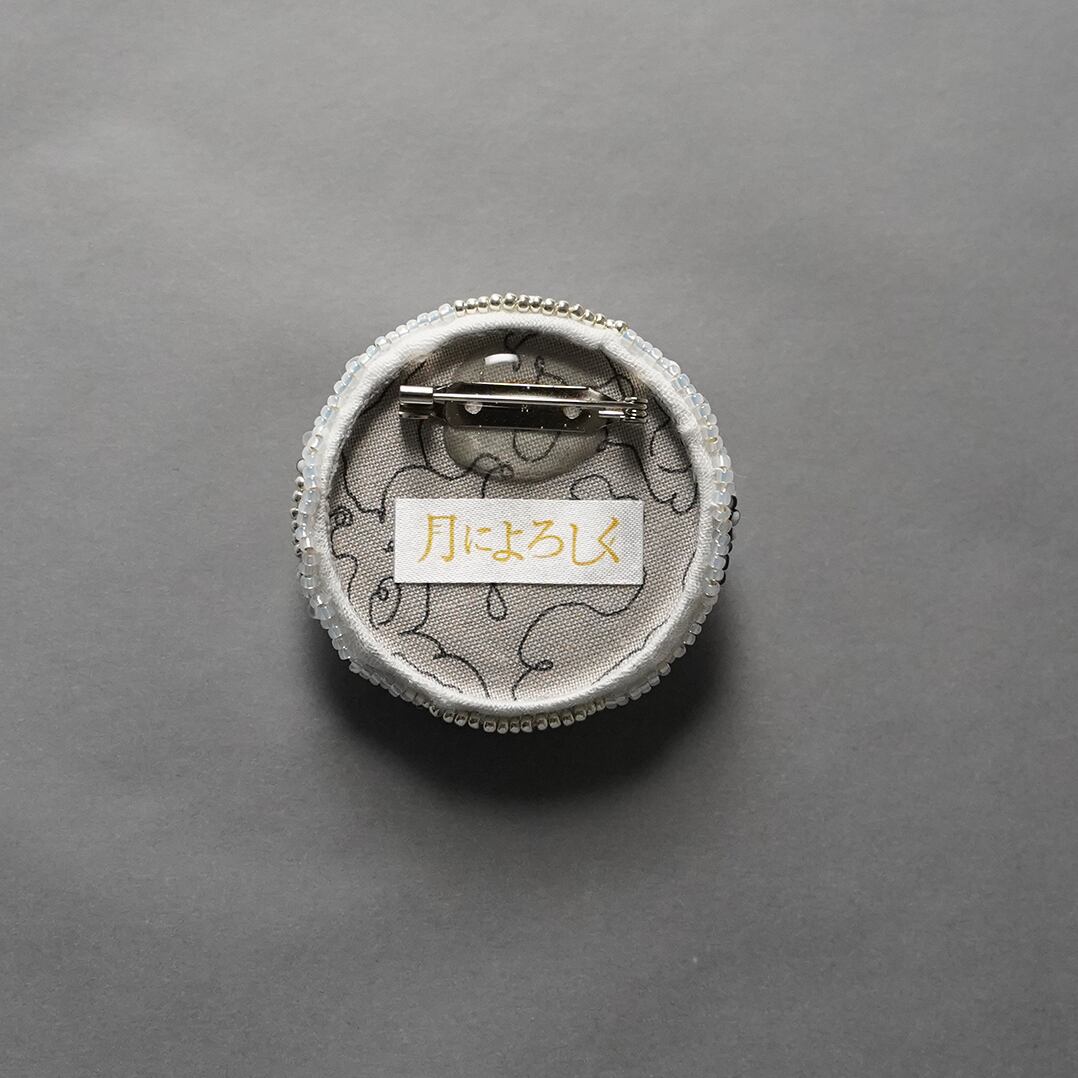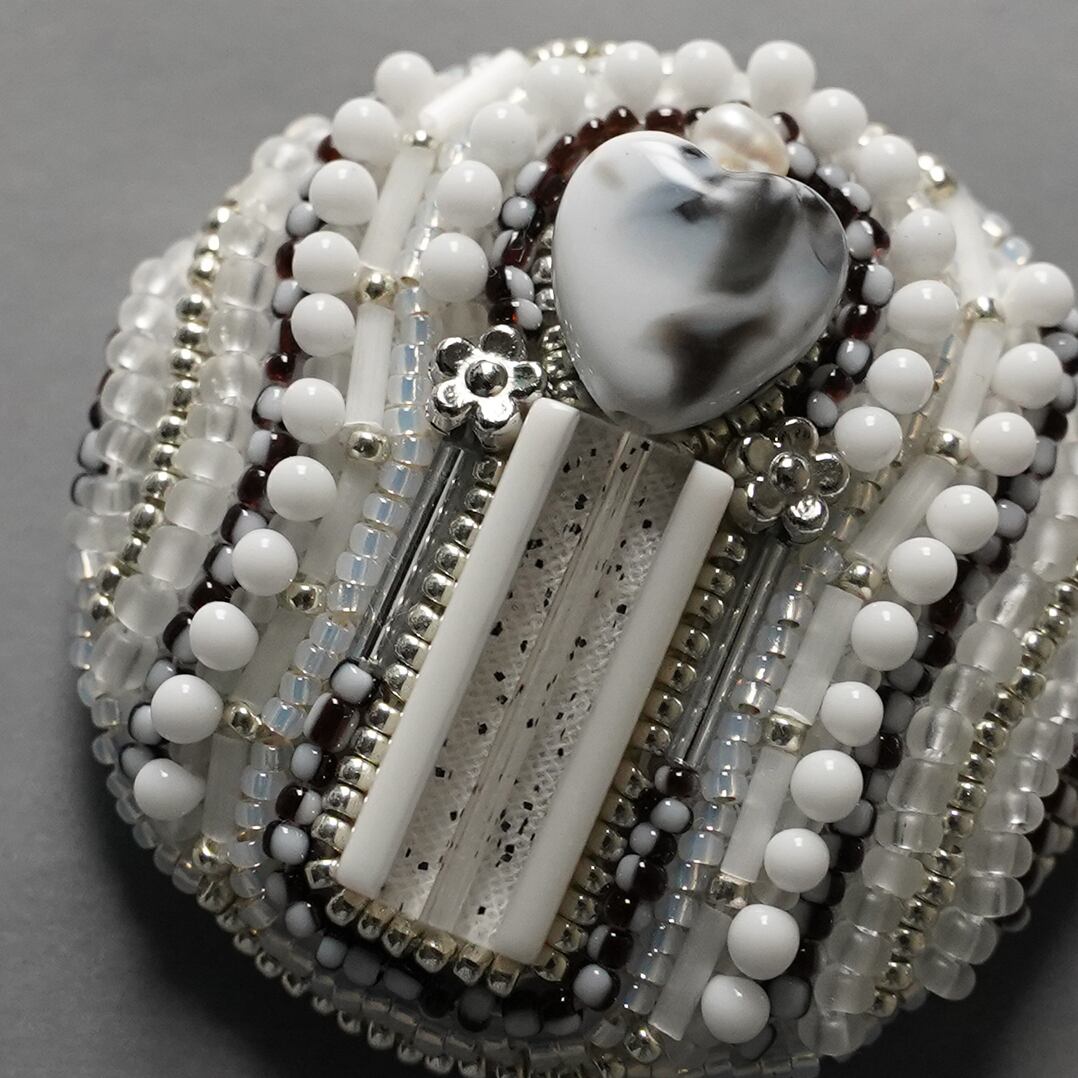 おしゃべりなブローチ おおぶり 5 ビーズ刺繍のブローチ ホワイト シルバー 寒色 シック 一点もの クリスマス