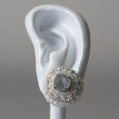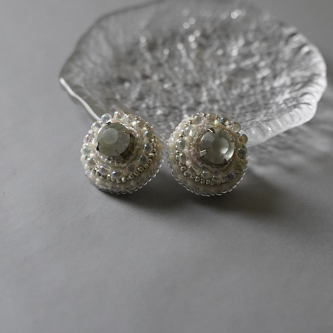 ビーズ刺繍のイヤリング ピアス 30 ビジュー クリア ホワイト おおぶり サージカルステンレス 一点もの 個性的