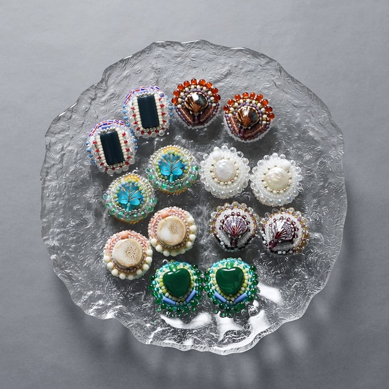 メインのビーズを引き立てるように細かなビーズを配置し、華やかなデザインに仕上げました。