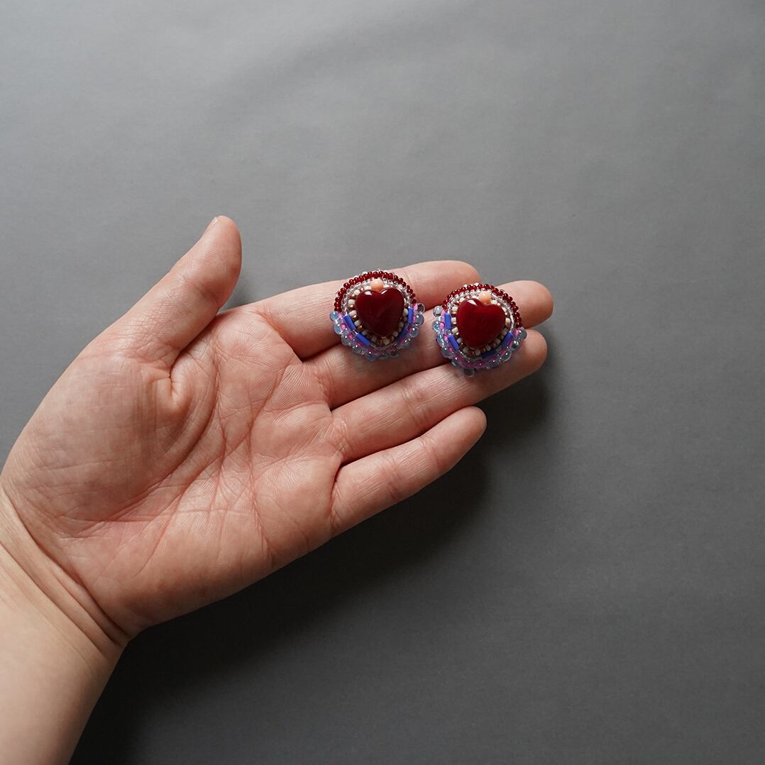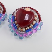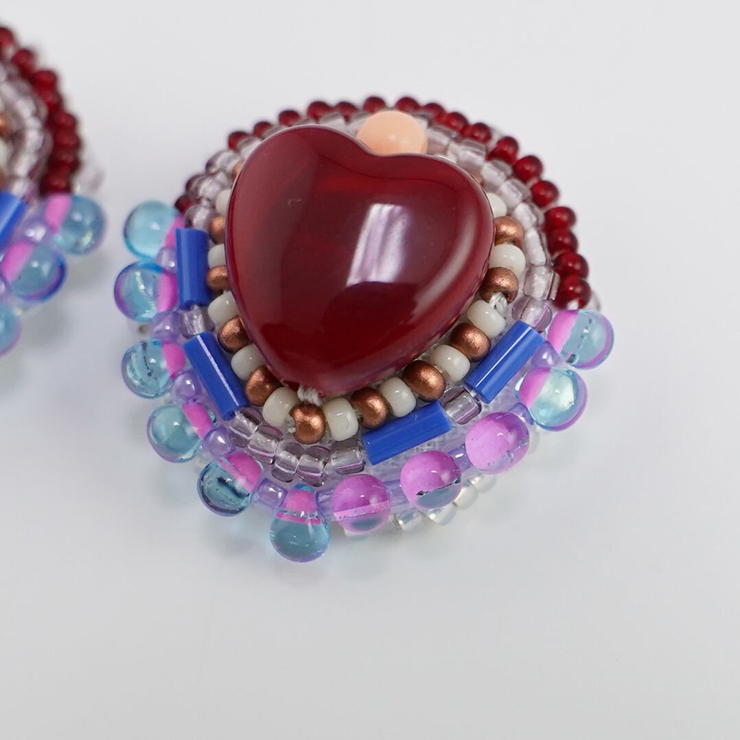 金具が選べる おしゃべりなイヤリング ピアス 45 ハート おおぶり サージカルステンレス 一点もの ビーズ刺繍