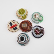 そのビーズを引き立てるように隙間なく刺繍をすると、カラフルでにぎやかで、まるでおしゃべりをしているように仕上がります。