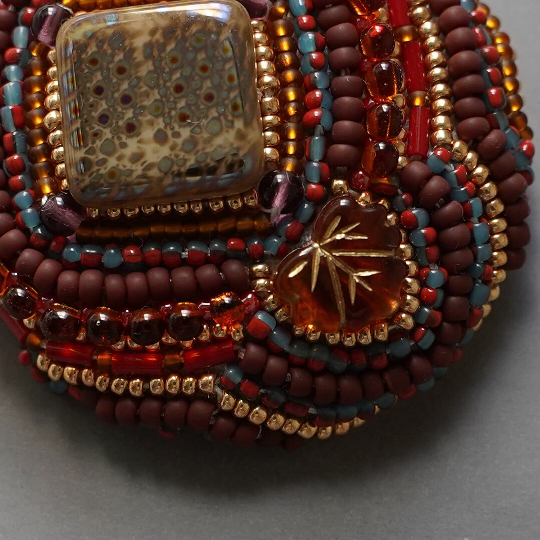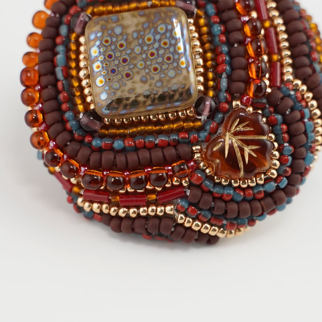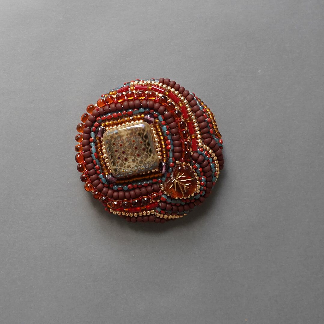 おしゃべりなブローチ おおぶり 8 ビーズ刺繍のブローチ ブラウン レッド カラフル 個性的 一点もの クリスマス