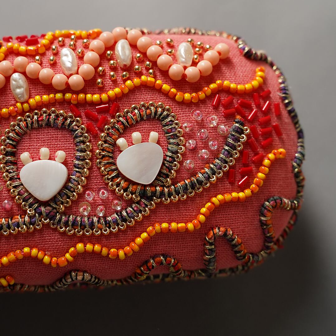 取り扱い注意:素材の特性上摩擦や雨により生地が毛羽立ったりビーズが退色したりする場合があります。