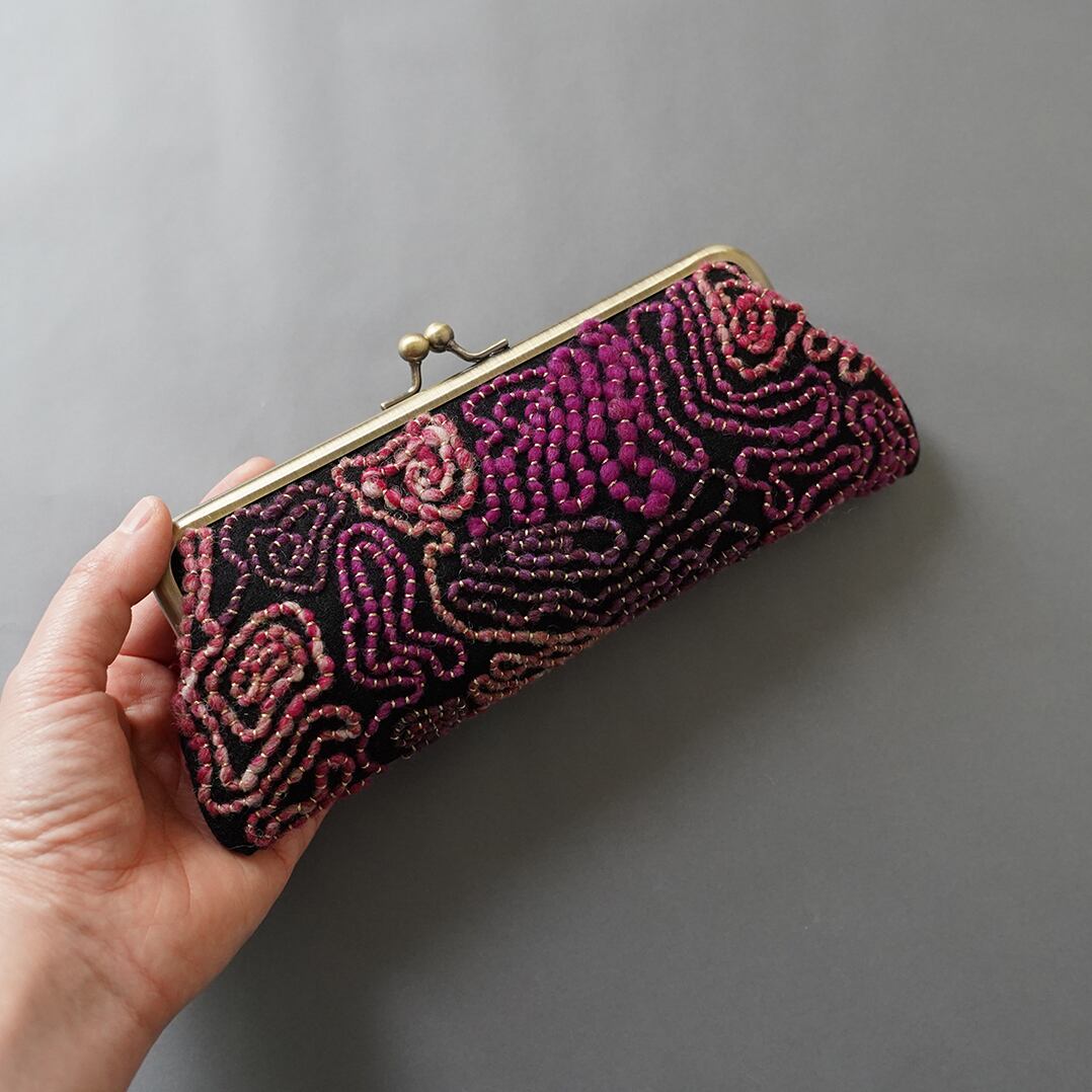 ※縫製の工程と素材の特性上、外地、特に口金まわりには細かなシワが寄ってることがあります。使用する際に支障はありませんが、気になる方は購入されないことをおすすめします。また、購入されてからの返品にはお応えできませんので、ご了承ください。