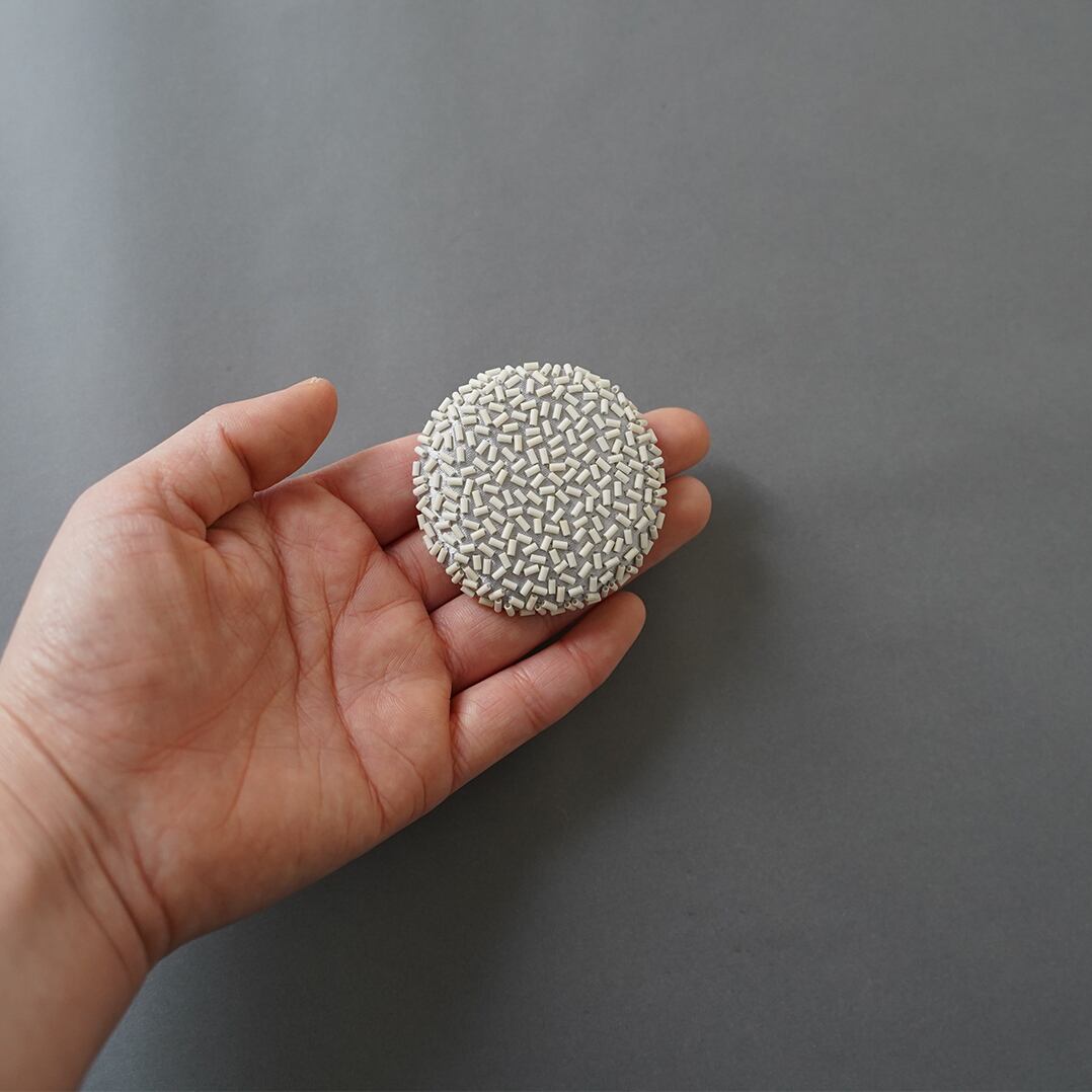 なんだかごま団子のようなチャーミングなブローチに仕上がりました。