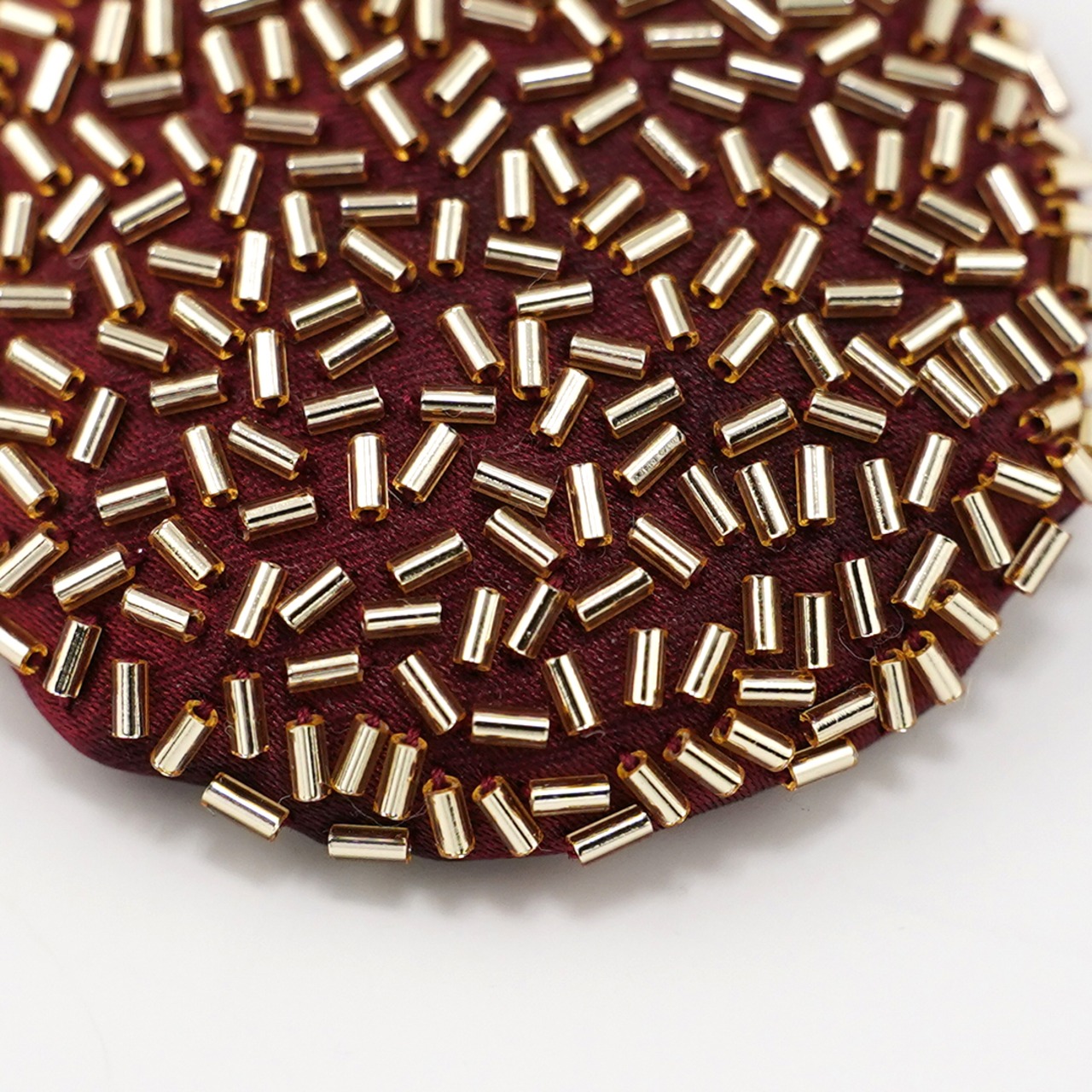 細かなビーズをたくさん使用していますがとても軽く、裏から接着剤で留めてあるため取れにくくなっています。