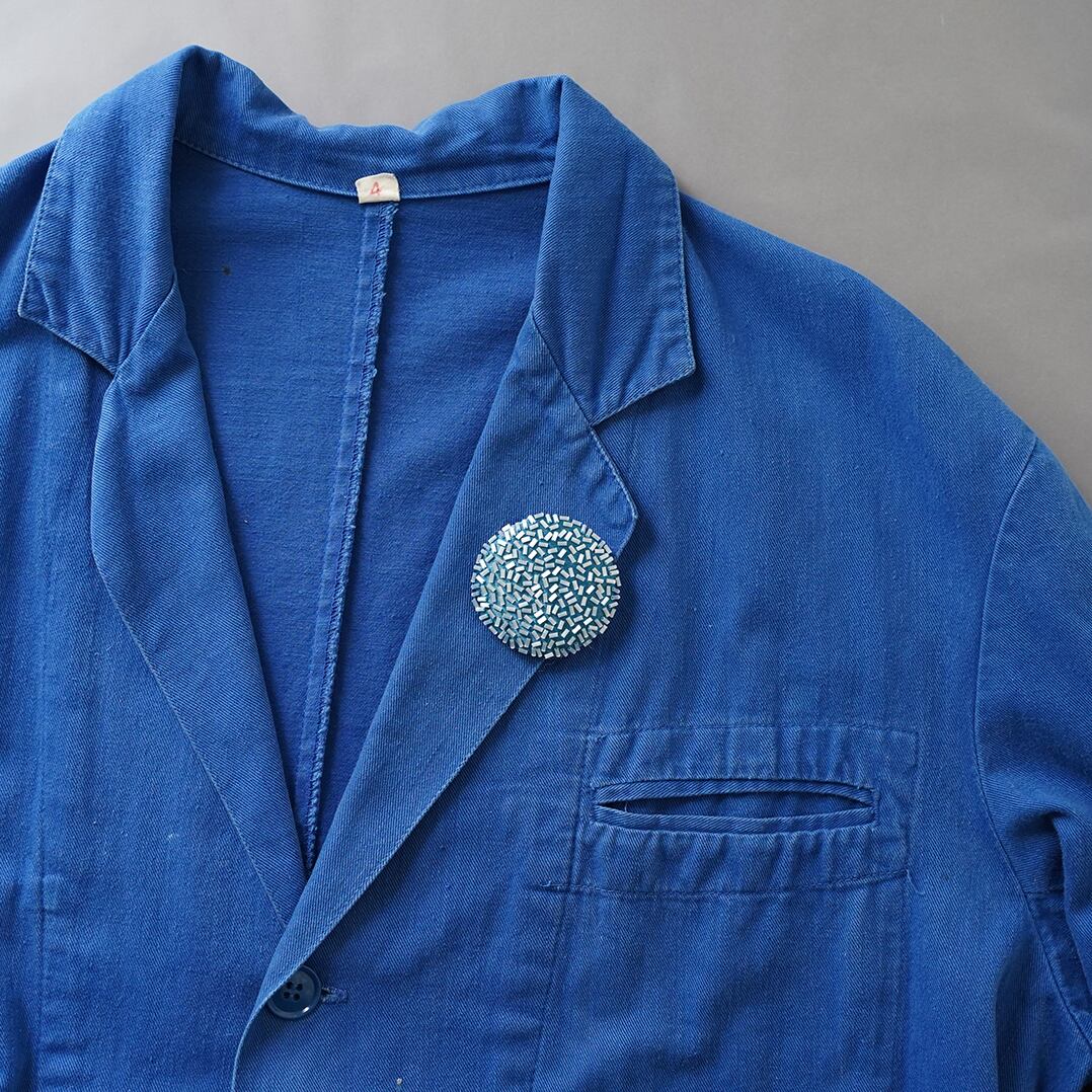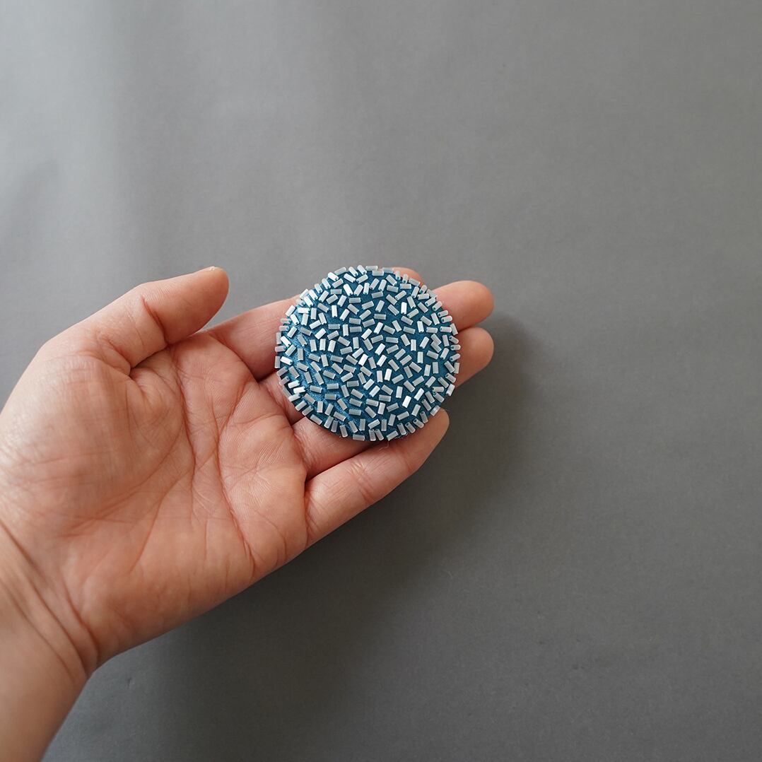 ブローチ ばらまく 5 おおぶり ビーズ刺繍のブローチ ブルー ホワイト 個性的 一点もの クリスマス