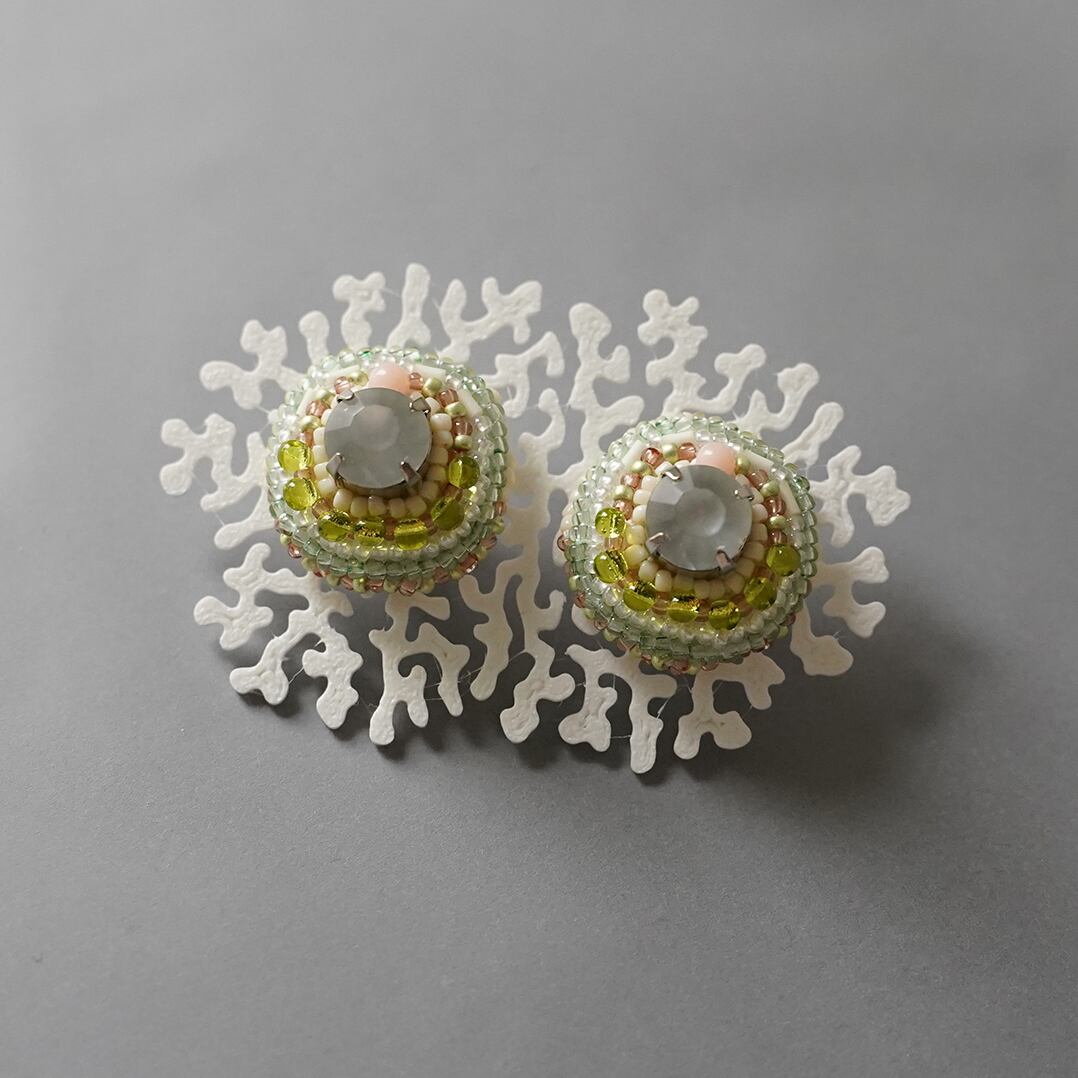 おしゃべりなイヤリング 3 まる クリア ビジュー おおぶり ニッケルフリーイヤリング カラフル 一点もの ビーズ刺繍