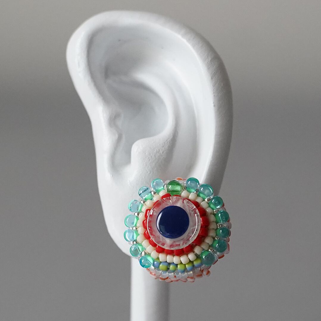 そのビーズを引き立てるように隙間なく刺繍をすると、カラフルでにぎやかで、まるでおしゃべりをしているように仕上がります。