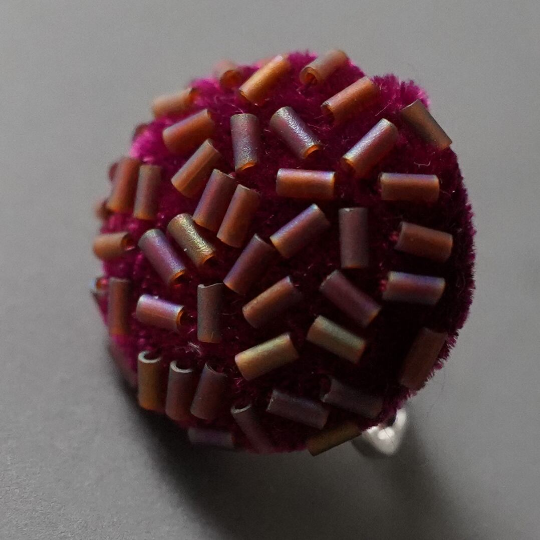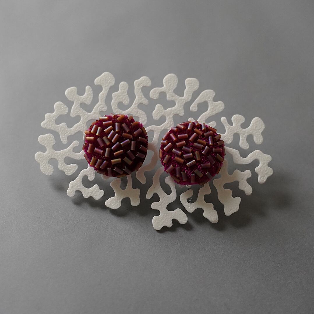 イヤリング ばらまく 1 まる 竹ビーズ ピンク ニッケルフリーイヤリング おおぶり 一点もの ビーズ刺繍