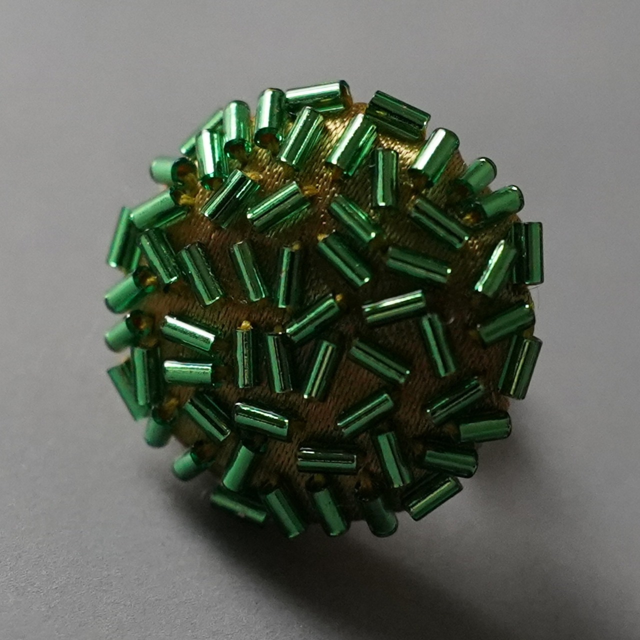 ビーズ刺繍をしようと、竹ビーズをマットにたくさん出した時、ランダムに散らばった様子が面白く目が離せなくなりました。