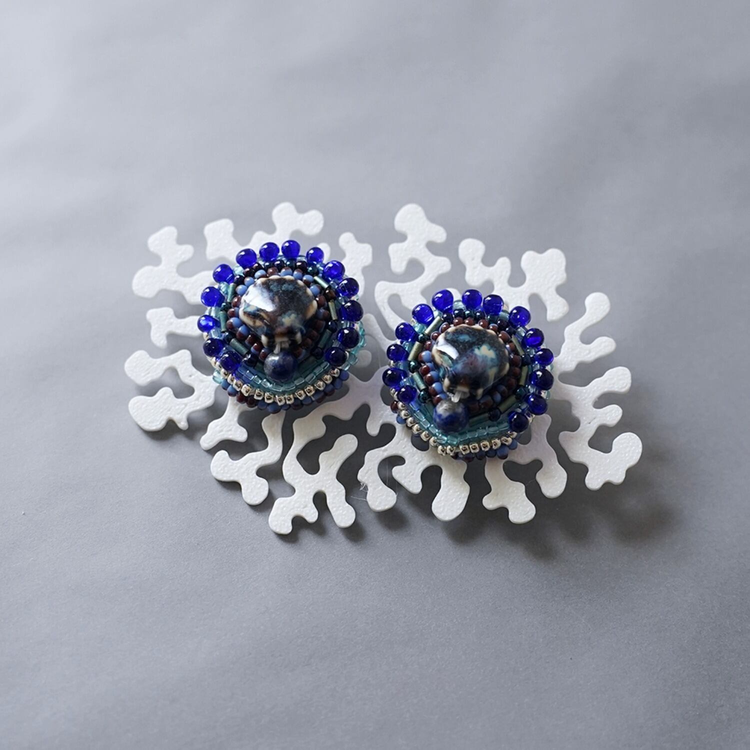 そのビーズを引き立てるように隙間なく刺繍をすると、カラフルでにぎやかで、まるでおしゃべりをしているように仕上がります。