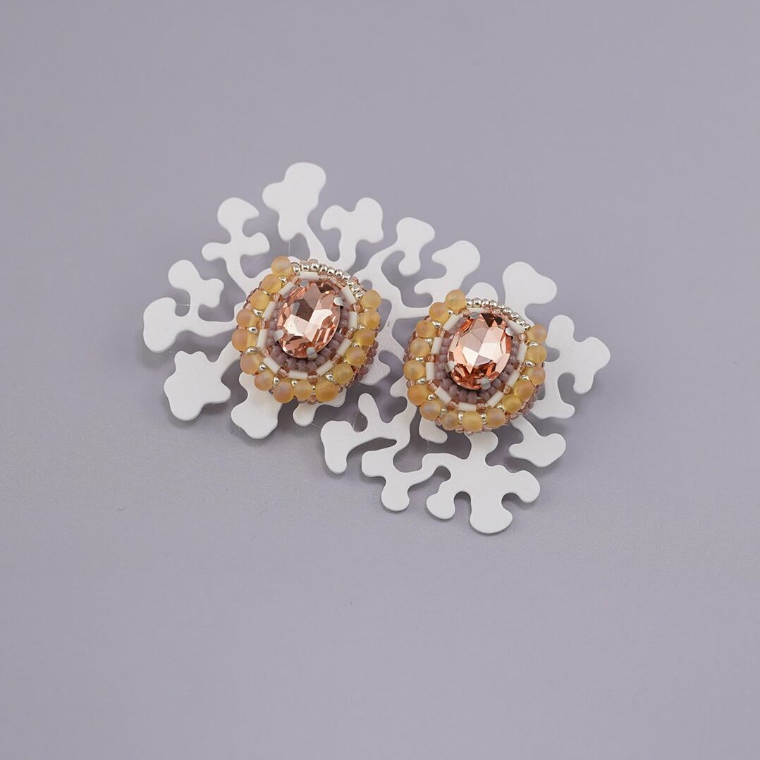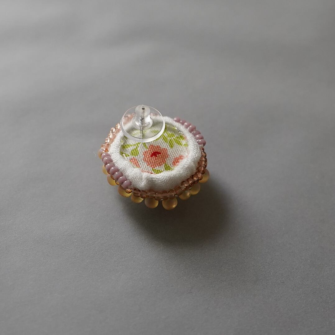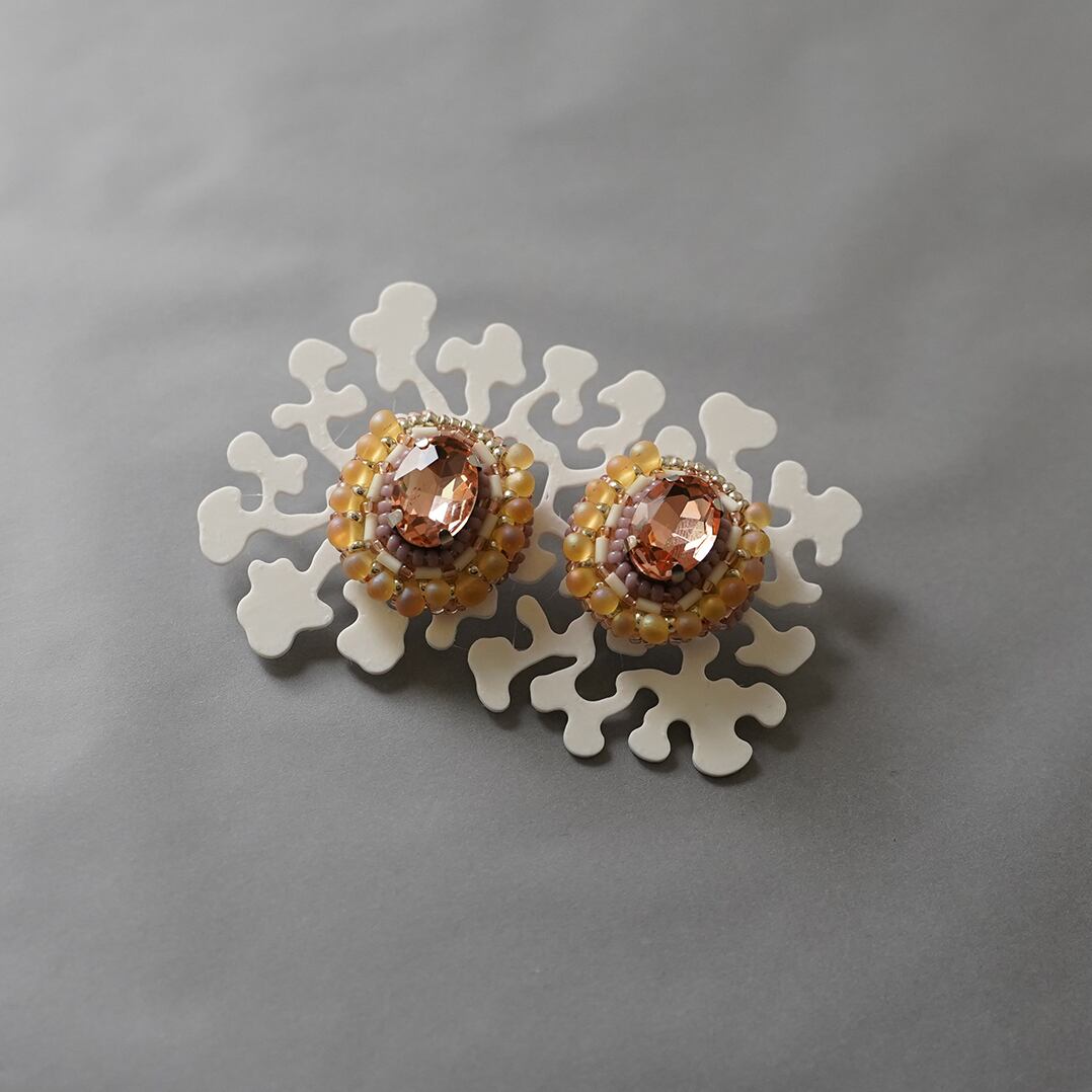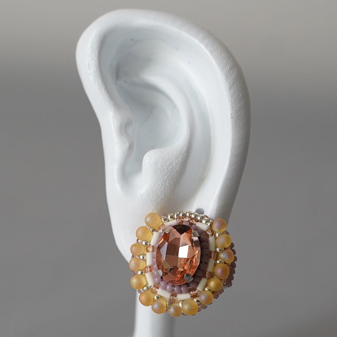 おしゃべりなピアス 5 まる オレンジ ビジュー ピンク おおぶり サージカルステンレスピアス 一点もの ビーズ刺繍
