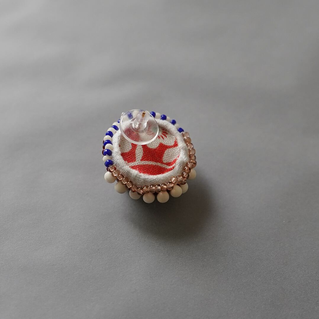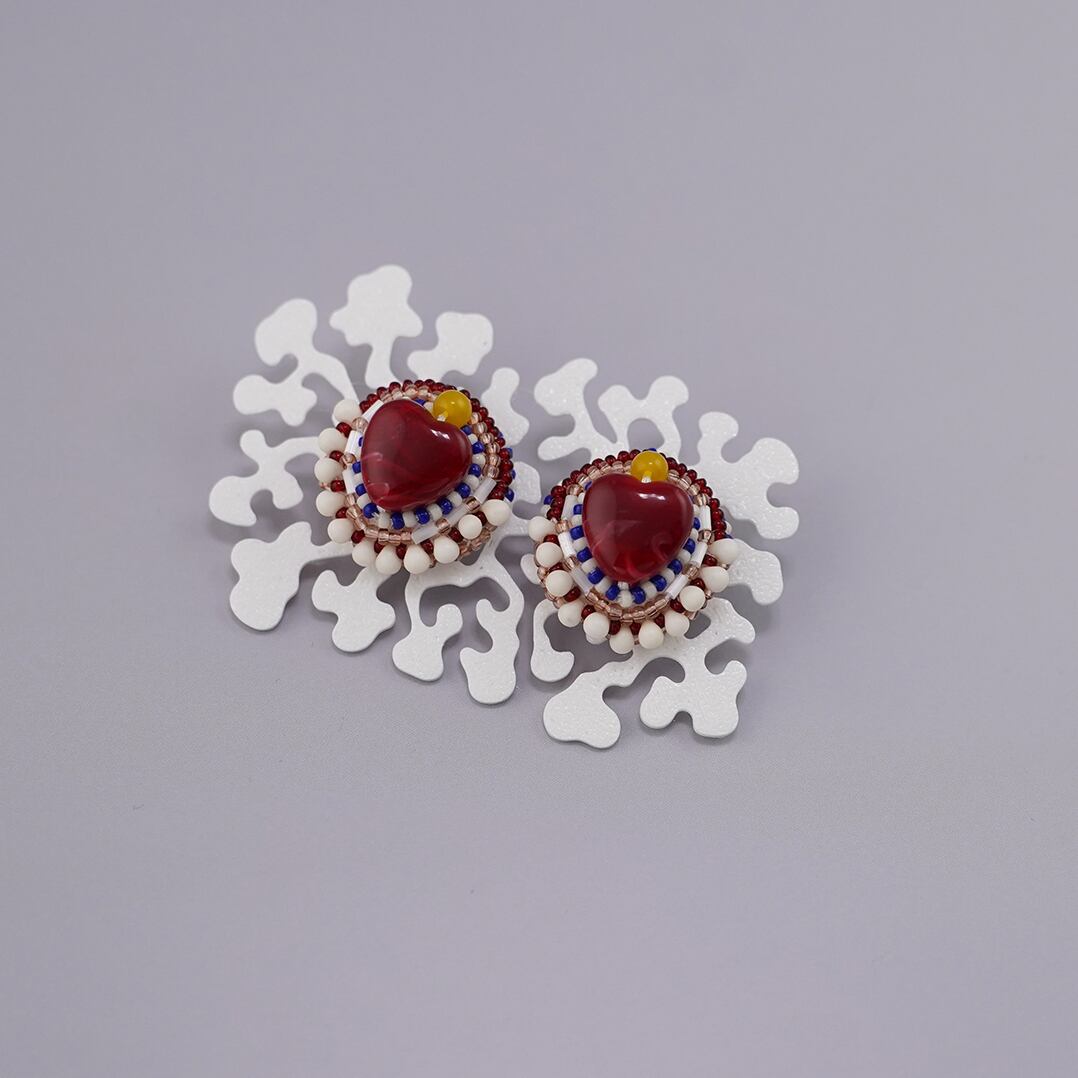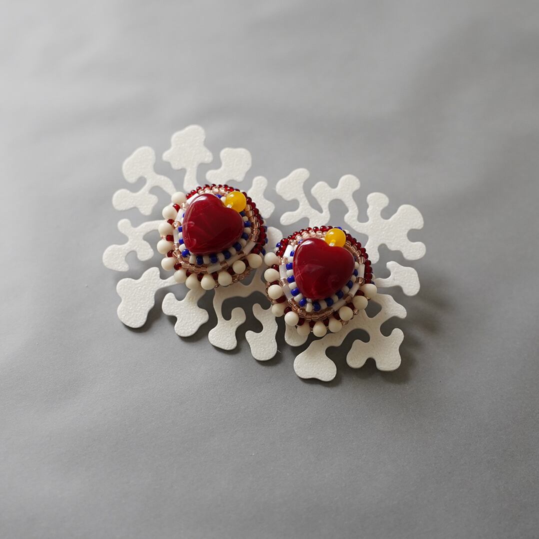 おしゃべりなピアス 9 まる ハート レッド おおぶり サージカルステンレスピアス 一点もの ビーズ刺繍