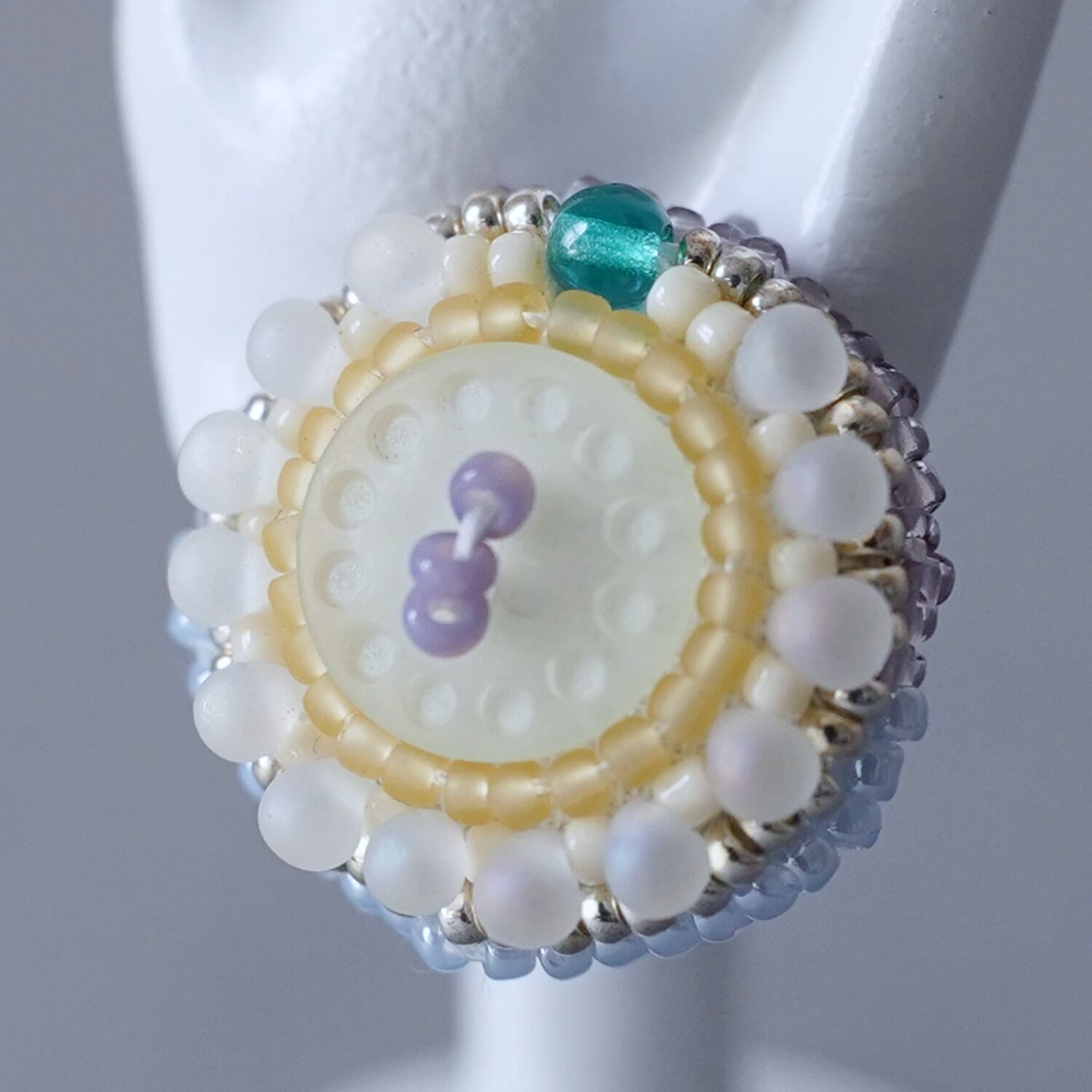おしゃべりなピアス 11 まる ボタン カラフル おおぶり サージカルステンレスピアス 一点もの ビーズ刺繍
