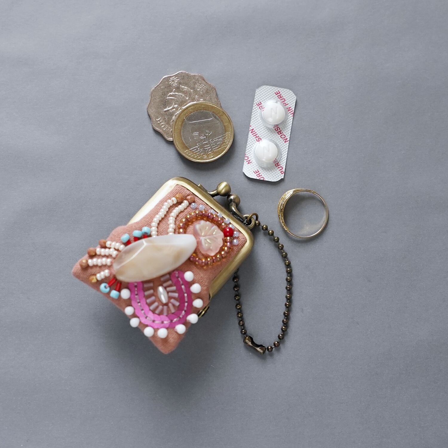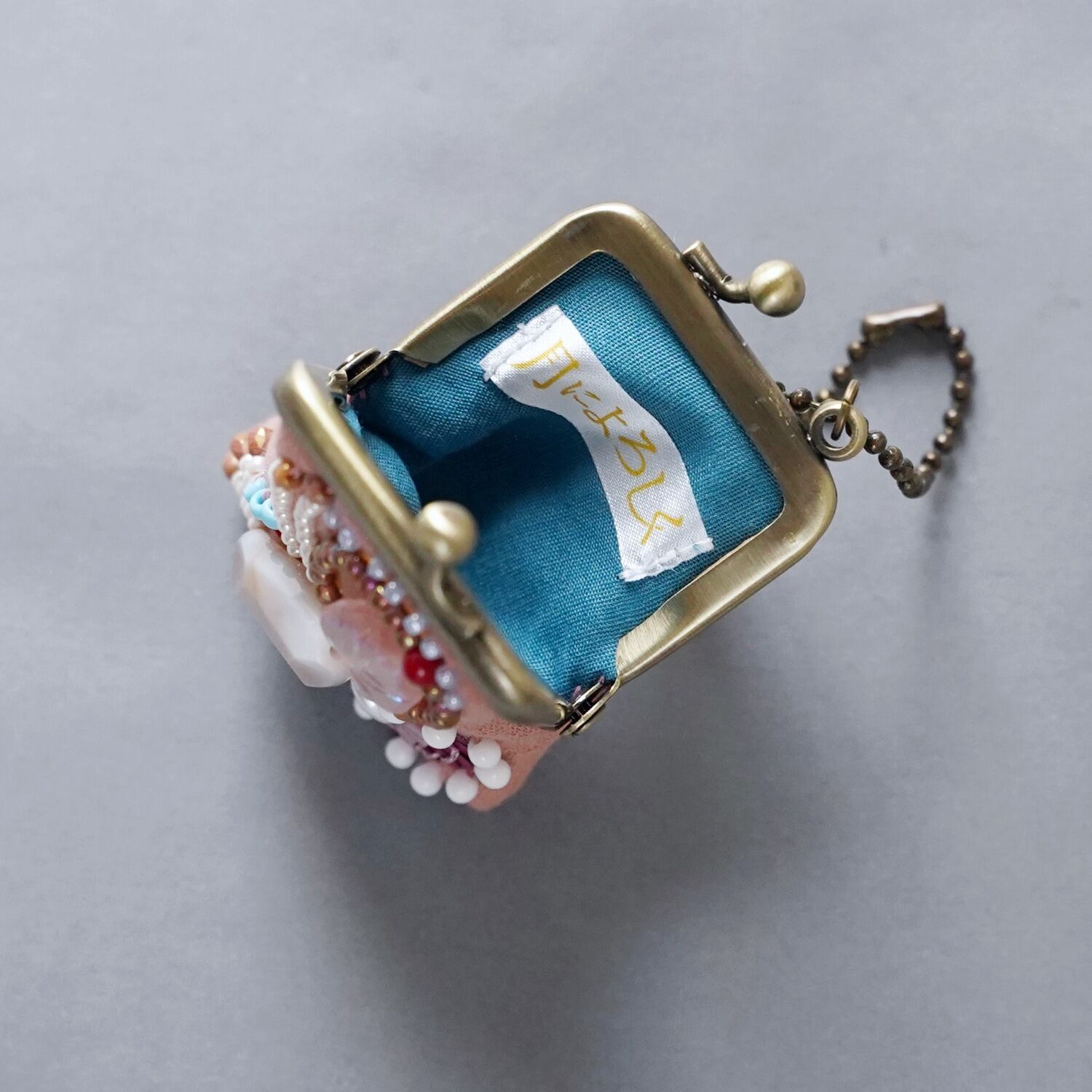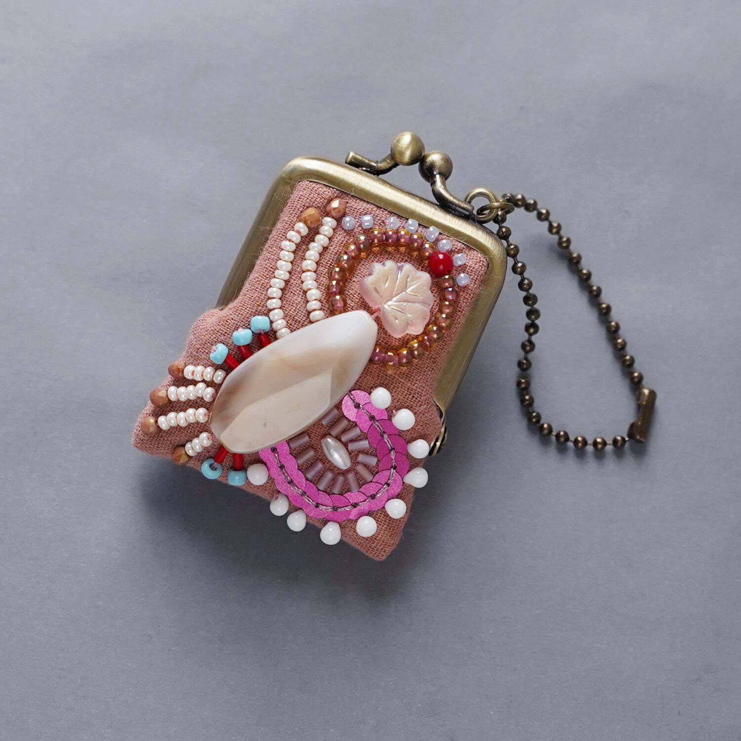 こんなに小さくて細かな刺繍のがま口があるんだ!── アクセサリーや常備薬など、細かなものがおさまる、華やかなビーズ刺繍の小さな小さながま口です。
